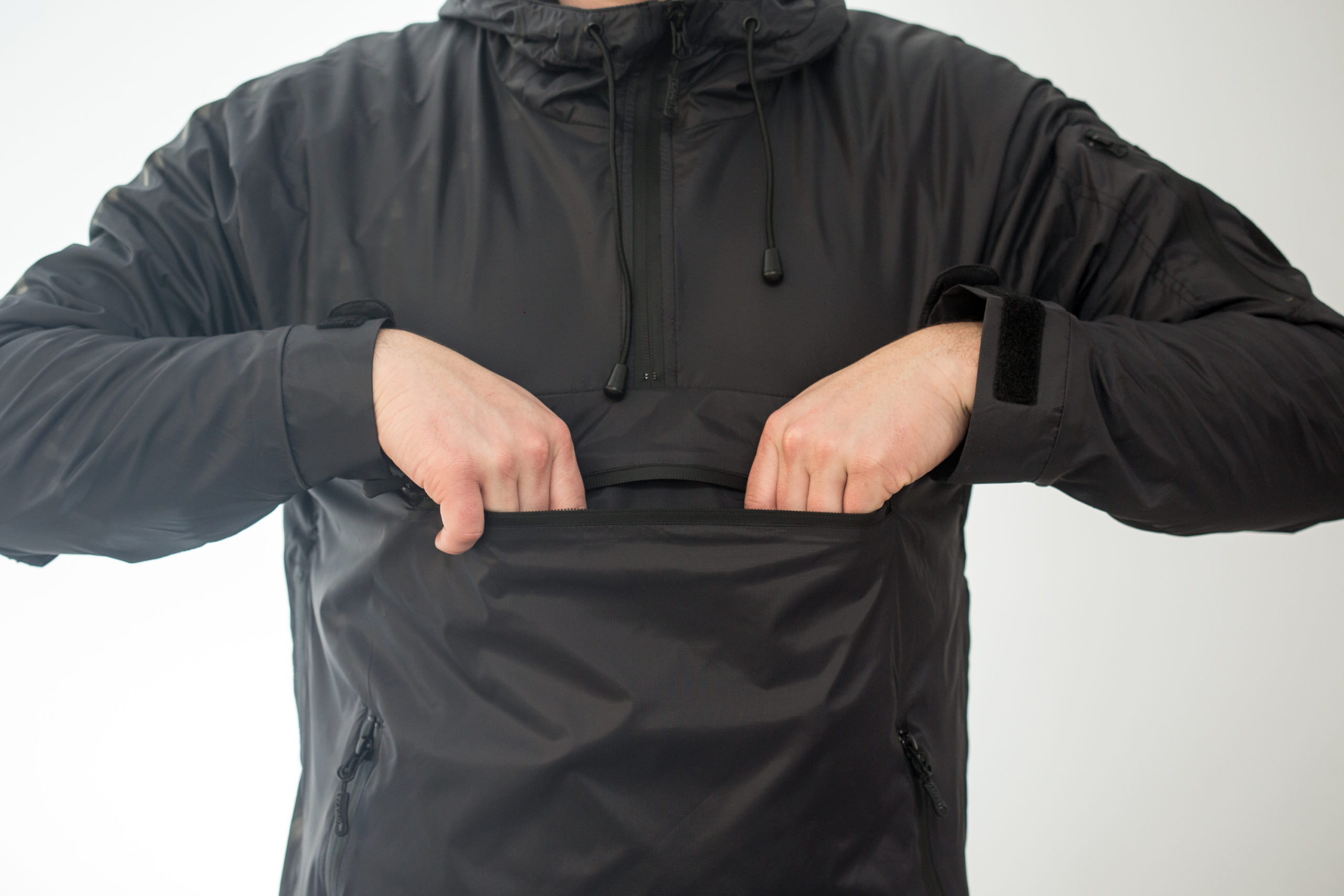regulacja kaptura, rękawów i dolnej części kurtki,